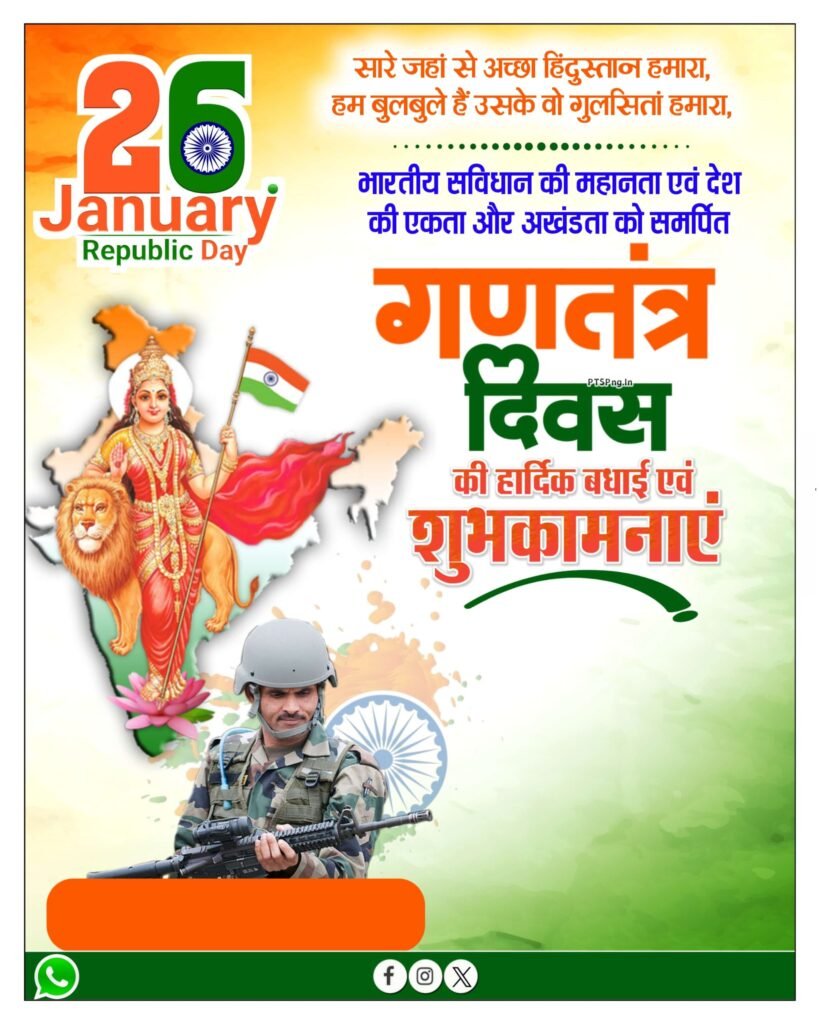 25/01/202625/01/2026 adminadmin 0 Comment आप सभी को गणतंत्र दिवस की हार्दिक बधाई एवं शुभकामनाएं।आप यहाँ से यह पोस्ट बिल्कुल फ्री में डाउनलोड कर सकते हैं। Post Views: 28 Post navigation Previous Previous post: Leave a Reply Your email address will not be published. Required fields are marked *Comment * Name * Email * Website Save my name, email, and website in this browser for the next time I comment. Cancel Reply